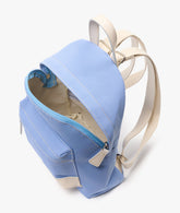 The baby backpack is the little accessory to accompany even the smallest of children. Made of light blue canvas, it has a zipper closure, an outside pocket, adjustable shoulder straps and all details in smooth cream leather. The recommended embroidery colors with light blue are white, baby pink and navy blue. Weight: 300 gr - Volume: 5 L