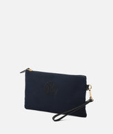The Inter x My Style Bags pouch is the perfect accessory for those who desire practicality and style in one item. Made from elegant navy blue canvas, it features the Inter logo embroidered in black, for a sober yet distinctive look. The side wrist strap ensures easy use, allowing you to carry the pouch with ease on any occasion. Its compact and functional design makes it ideal for holding essential items like keys, phone, and wallet, while subtly showcasing your Nerazzurri pride with elegance and refinement.