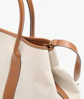 The Ale Hand Bag is an XL model that combines style and functionality, making it perfect for travelling thanks to its ample interior space. This elegant gusseted accessory is designed with two buttons that allow you to vary the capacity, adapting to your needs. Made of panamone, a thick and durable fabric, the bag offers handles, a base, two bands and an adjustable leather strap. Inside, lined with cotton, it has a practical zipped pocket, ideal for keeping smaller items safe. Furthermore, the Ale bag in panamone can be customised, for a one-of-a-kind handbag.