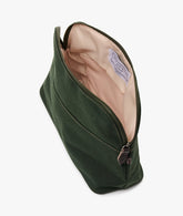 The greenfinch color and the personalization make this trousse the perfect cosmetic travel bag. The recommended embroidery colors with dark green are dark brown, raw and honey.
