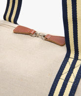 Available in raw linen with a cream and dark blue-colored band, embroidery can be added to truly personalize the product. The recommended embroidery colors for raw are dark blue and light leather.