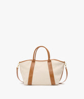 The Lola handbag is our most practical and versatile handbag model. Due to its capacity, the large version can be integrated and used as a travel bag. This panamone version handbag is distinguished by the thickness and strength of its material. It has a pure cotton lining, light leather shoulder strap and handles, gold hardware, zipper closure, and an inside pocket.