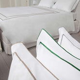 These pillowcases are made of soft pure white cotton satin and feature an elegant natural coloured satin border. The pillowcases measure 50x80 cm and are ideal for adding a touch of colour and style to your bed. The high-quality cotton fabric guarantees optimal comfort while sleeping. Add a touch of elegance to your bedroom with this pair of high-quality pillowcases.
