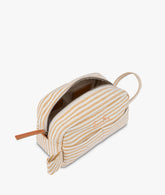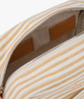This beauty case has the iconic shape of the My Style Bags accessories, characterised by stripes alternating cream and ochre, guaranteeing unmistakable elegance. Made of cotton, this beauty case has smooth leather details. Suitable for men and women, for storing make-up, creams and personal hygiene products, the striped colouring and personalisation make this beauty case the perfect travel accessory. The recommended embroidery colour is bronze.